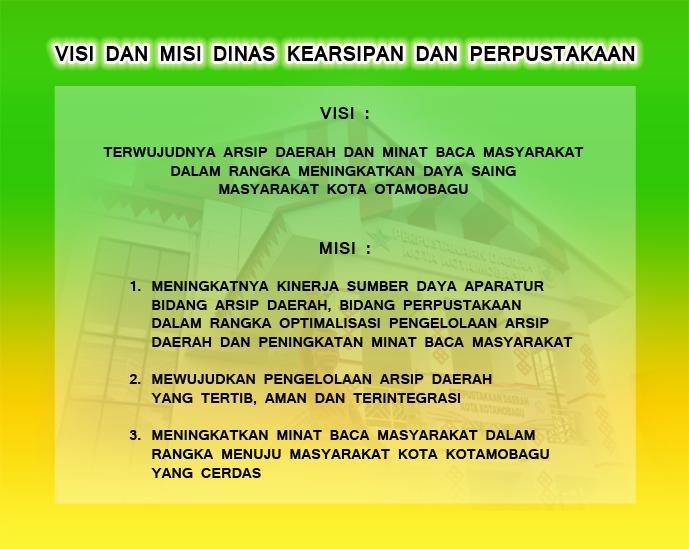Visi dan Misi Dinas Kearsipan dan Perpustakaan